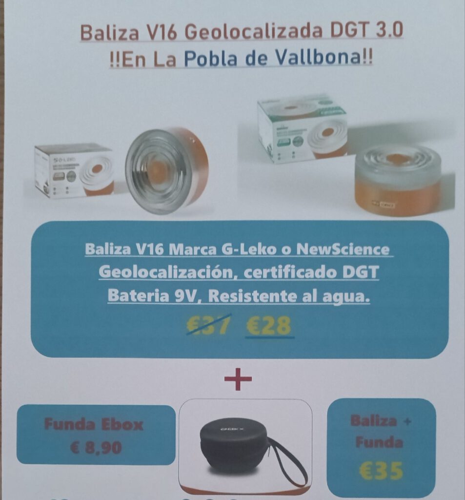 Baliza V16 con geolocalización y certificado DGT. Incluye pila de 9V. Hasta fin de stock!